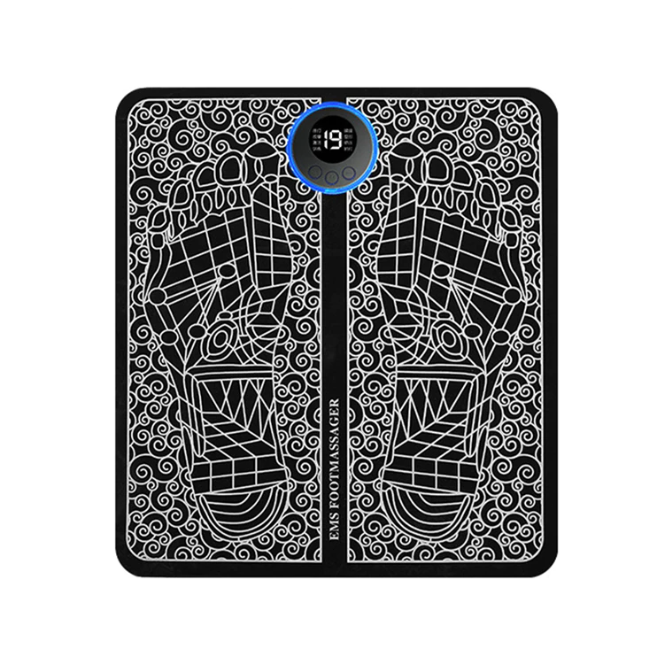 The foot massager uses electrical muscle stimulation (EMS) technology to stimulate the foot muscles through low-frequency bioelectrical pulses. It is designed to improve blood circulation and relieve cold and cramping feet. The mat's open design makes it suitable for most foot shapes.